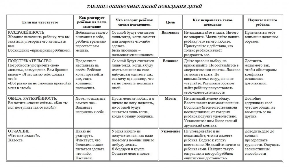 Рудольф Дрейкурс рассматривал плохое поведение детей как ошибочную цель, которую можно переориентировать. Он условно разделил плохое поведение на четыре основных категории, или цели: внимание, влияние, месть и уклонение. Пользуйтесь этими категориями как отправной точкой для установления ошибочной цели поведения вашего ребенка. Я не предлагаю вам навешивать на детей определенные ярлыки, чтобы четко соотнести с ними эти четыре условные цели, потому что каждый ребенок — это уникальная личность. И все-таки эти цели можно использовать для того, чтобы понять намерения того или иного поведения ребенка.